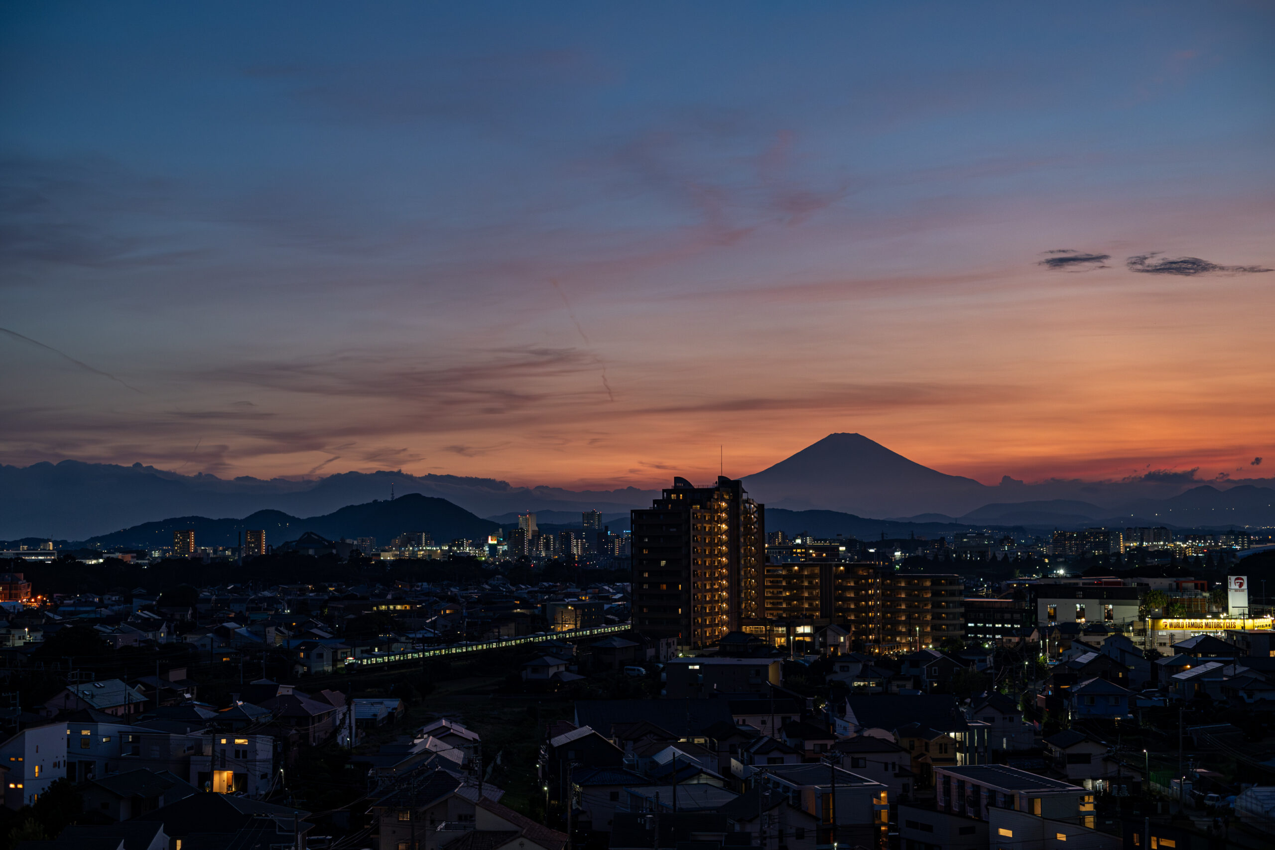電車・手前のマンション・富士山、全体の雰囲気、良いと思う。